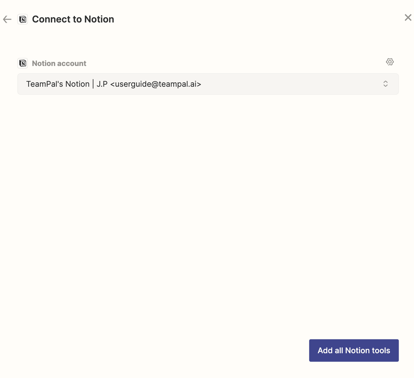 Browse and choose the tools you want to enable for your selected app. These tools determine what your TeamPal agent can do within that app.