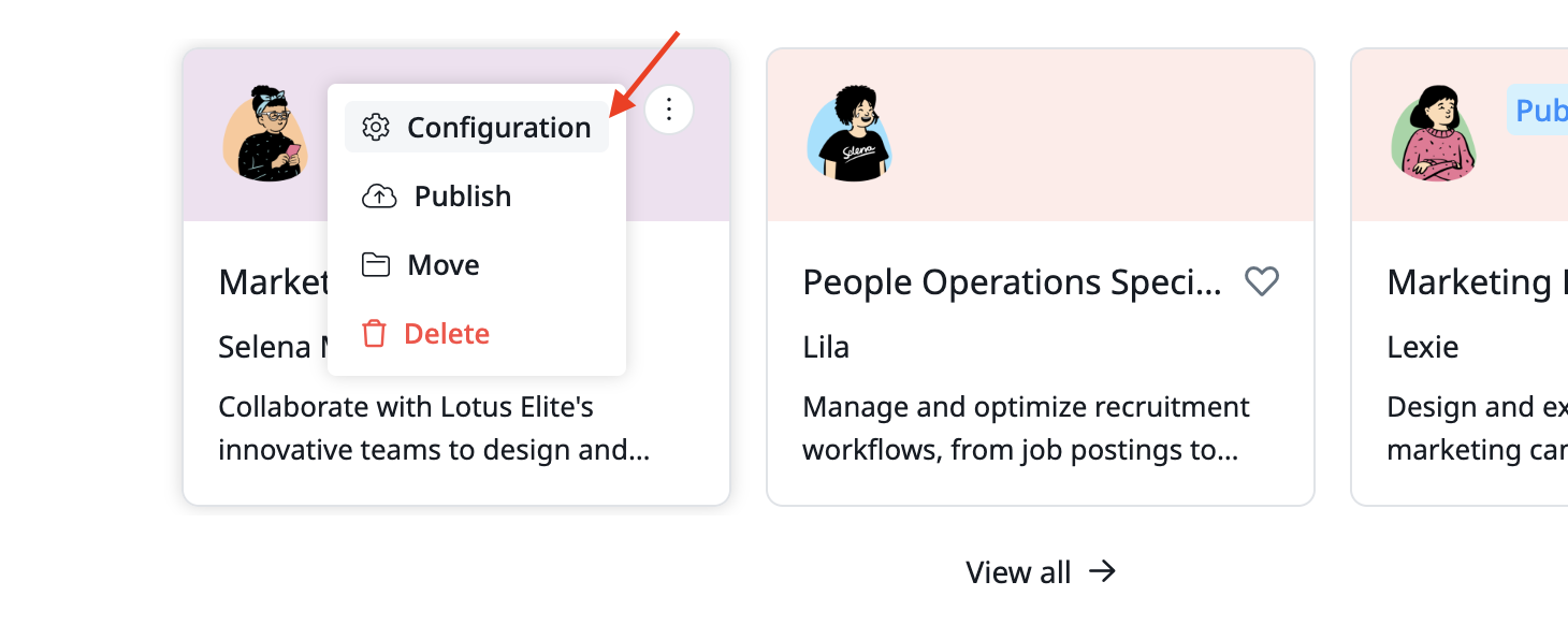 Click on the Configuration option in your TeamPal Agent. This brings you to the main settings area for your Agent.